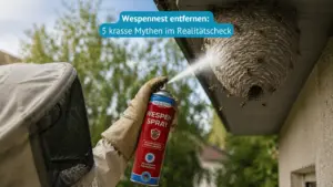 DIY-Methoden bergen Risiken wie Stiche und allergische Reaktionen. Ohne die richtige Ausrüstung und Erfahrung kann die Entfernung gefährlich sein. Einmal rief mich ein Kunde an, der schwer gestochen wurde, nachdem er versucht hatte, ein Nest selbst zu beseitigen. Die zusätzliche medizinische Behandlung und die professionelle Entfernung kosteten ihn am Ende mehr als ursprünglich geplant. Eine DIY-Methode, von der auf jeden Fall abzuraten ist, ist die Bekämpfung eines Wespennestes mit Haarspray. Haarspray gegen Wespen funktioniert nur temporär und birgt die Gefahr die Wespen aggressiv zu machen.