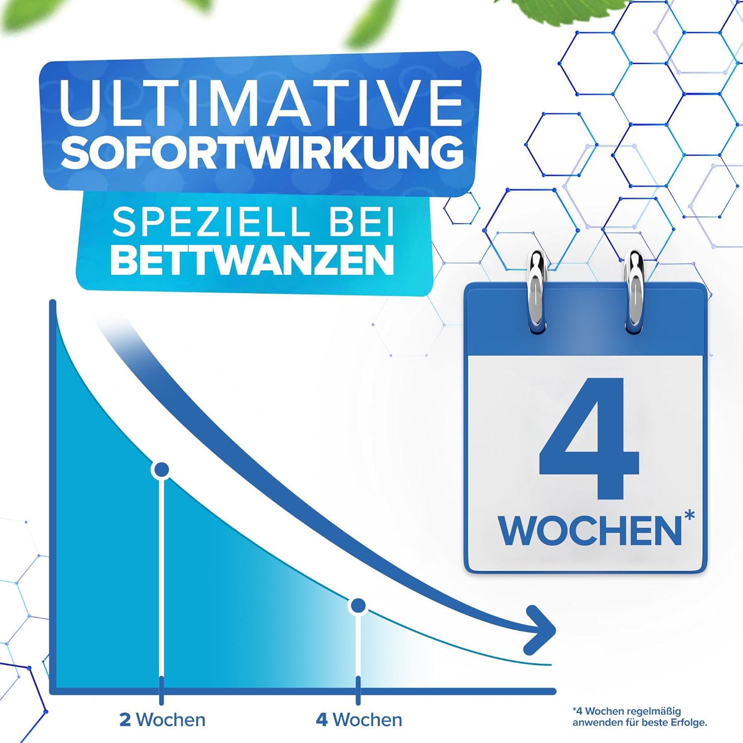 Wichtig: Bei hartnäckigen oder bereits länger andauernden Problemen kann die Anwendung mehrmals pro Woche, bis zum Ausbleiben der Bettwanzen, wiederholt werden.