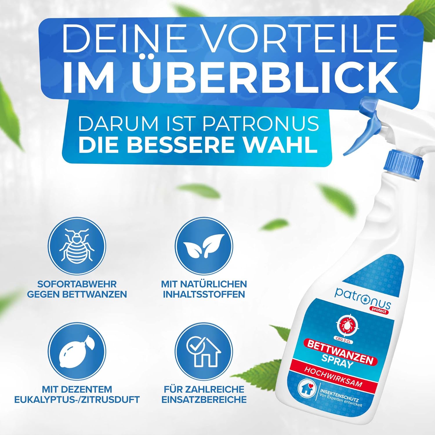 Wo Du beste Mittel wie das Bettwanzen-Spray kaufen kannst? Natürlich bei Deinem Profi rund um die Schädlingsbekämpfung – im Patronus Online-Shop. Neben all unseren Mitteln gegen Schädlinge ist auch unser Bettwanzen-Schutz-Spray besonders sorgsam und ohne schädliche Treibgase zusammengesetzt. Entdecke unsere verschiedenen Lösungen gegen Bettwanzen und finde die für Dich passende.