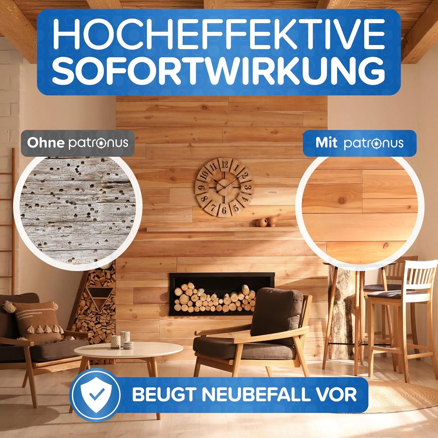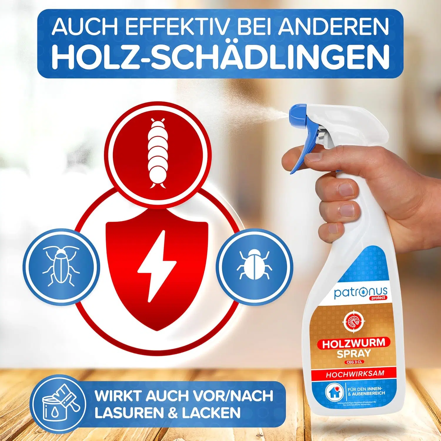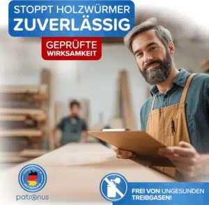 Wichtig: Bei hartnäckigen oder bereits länger andauernden Problemen kann die Anwendung mehrmals pro Woche, bis zum Ausbleiben der Holzwürmer, wiederholt werden.