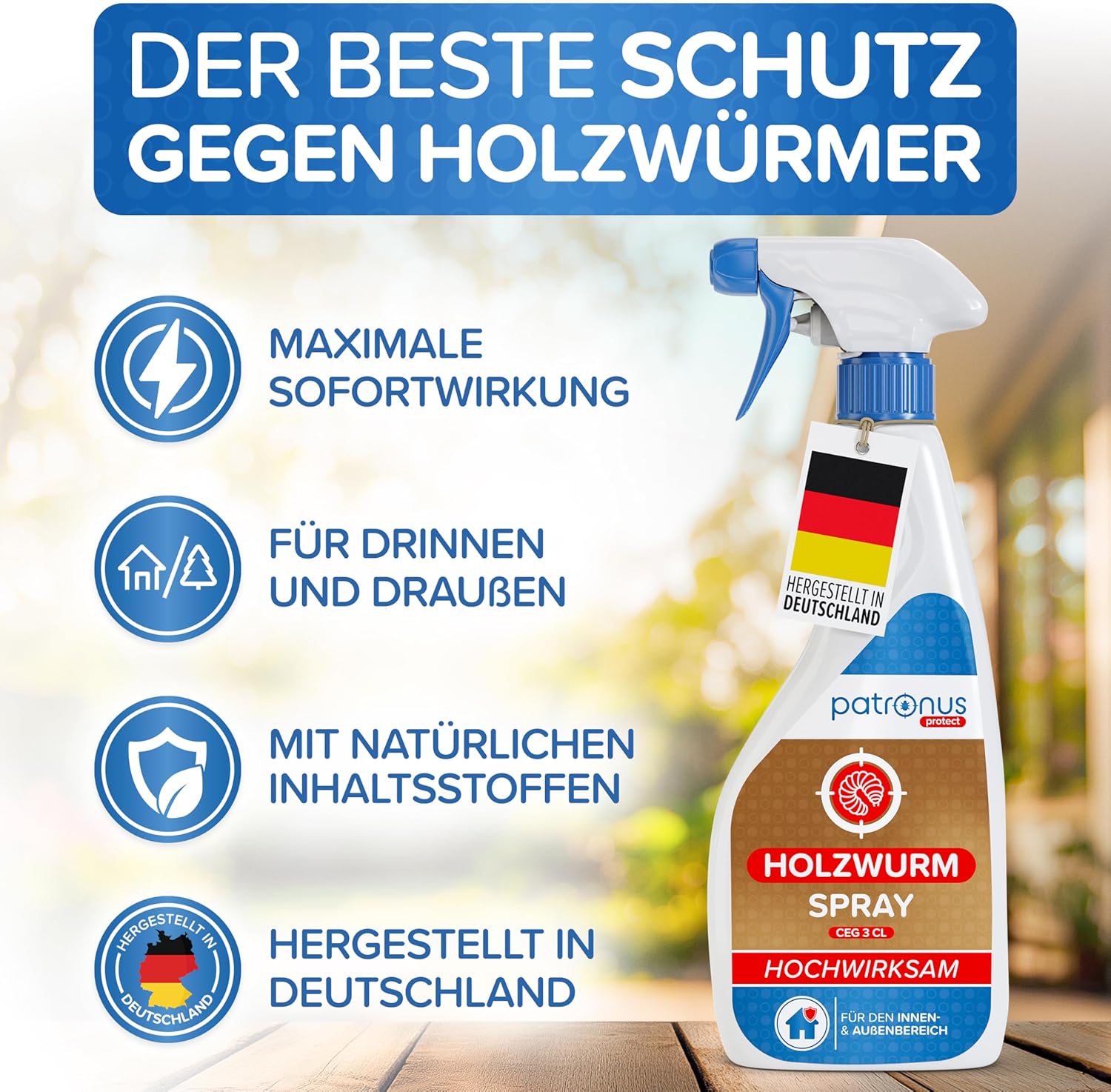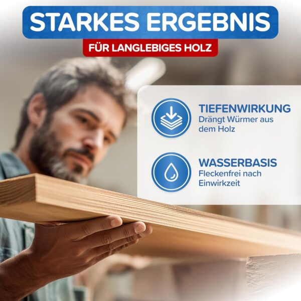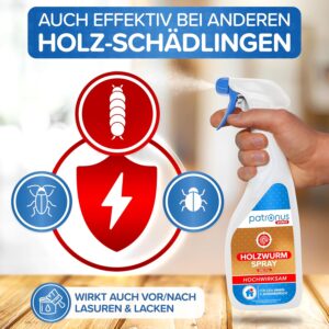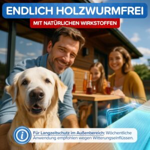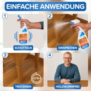 Wichtig: Bei hartnäckigen oder bereits länger andauernden Problemen kann die Anwendung mehrmals pro Woche, bis zum Ausbleiben der Holzwürmer, wiederholt werden.