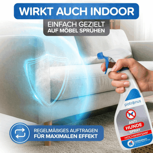 2. Schritt: Spray schüttel und intensiv auf die von Hunden zu meidenden Stellen & Gegestände sprühen
