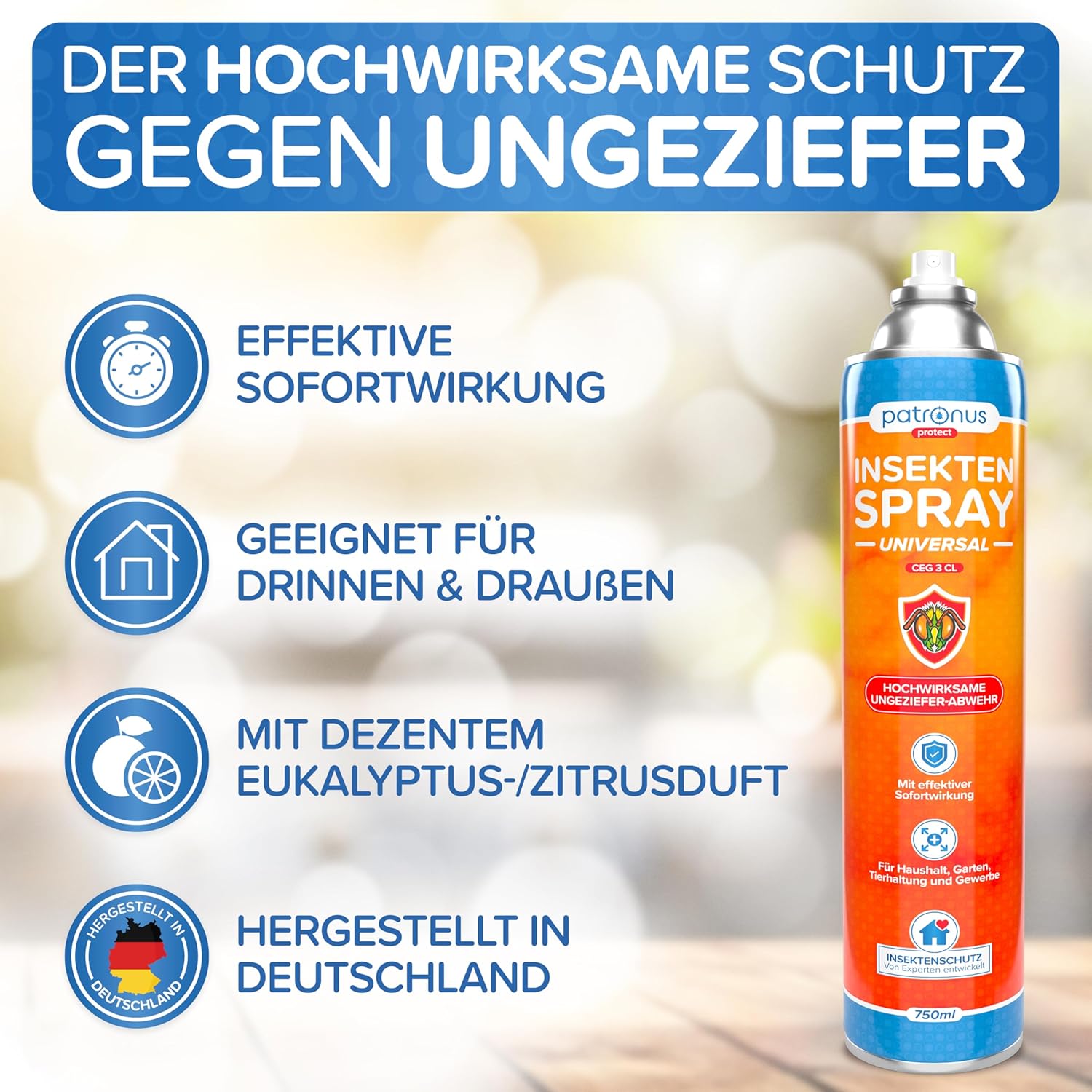 | Wirkstoffe | 3,0 g/kg Chrysanthemum-cinerariaefolium-Extrakt aus offenen und reifen Tanacetum-cinerariifolium-Blüten, mit überkritischem Kohlendioxid gewonnen (CAS-Nr.: 89997-63-7), 2,0 g/kg Geraniol (CAS-Nr.: 106-24-1), 2,0 g/kg Zitroneneukalyptusöl, hydratisiert, cyclisiert (CAS-Nr.: 1245629-80-4). Treibmittel: Propan, Butan. |