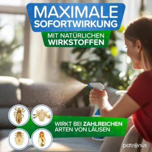 2. Schritt: Textilien und Aufenthaltsorte von Läusen & Nissen aus ca. 30 cm Entfernung besprühen