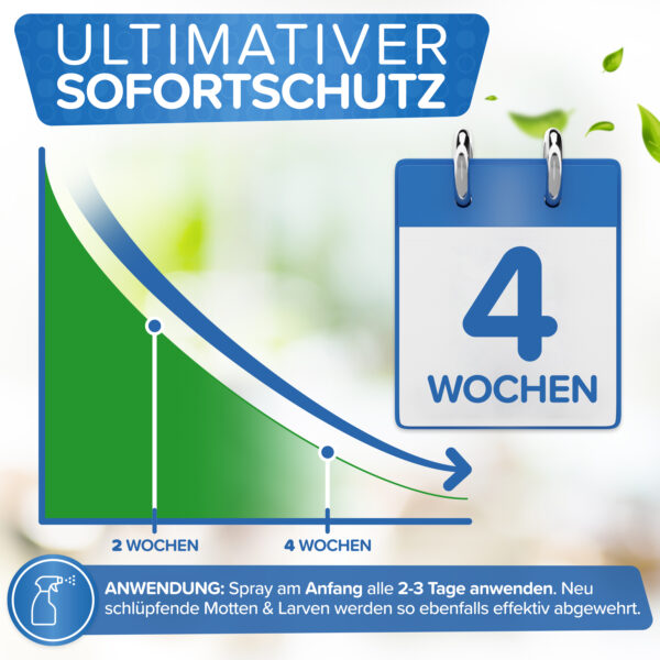 Wichtig: Bei hartnäckigen oder bereits länger andauernden Problemen kann die Anwendung mehrmals pro Woche, bis zum Ausbleiben der Motten, wiederholt werden.