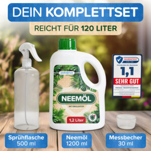 •⁠ ⁠Dosierung: 5–10 ml Neemöl auf 1 l Wasser