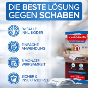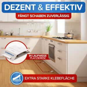 | Rechtlicher Hinweis | Monitoring-Klebefallen sind für den Nachweis von Schädlingen geeignet. Sie sind nicht ausreichend wirksam für die Bekämpfungsmaßnahmen bei einem eindeutigen Befall. Wird ein akuter Befall mit Schädlingen festgestellt, muss die Bekämpfung mit geeigneten Mitteln durchgeführt werden. Bitte beachten Sie dazu den Beipackzettel. |