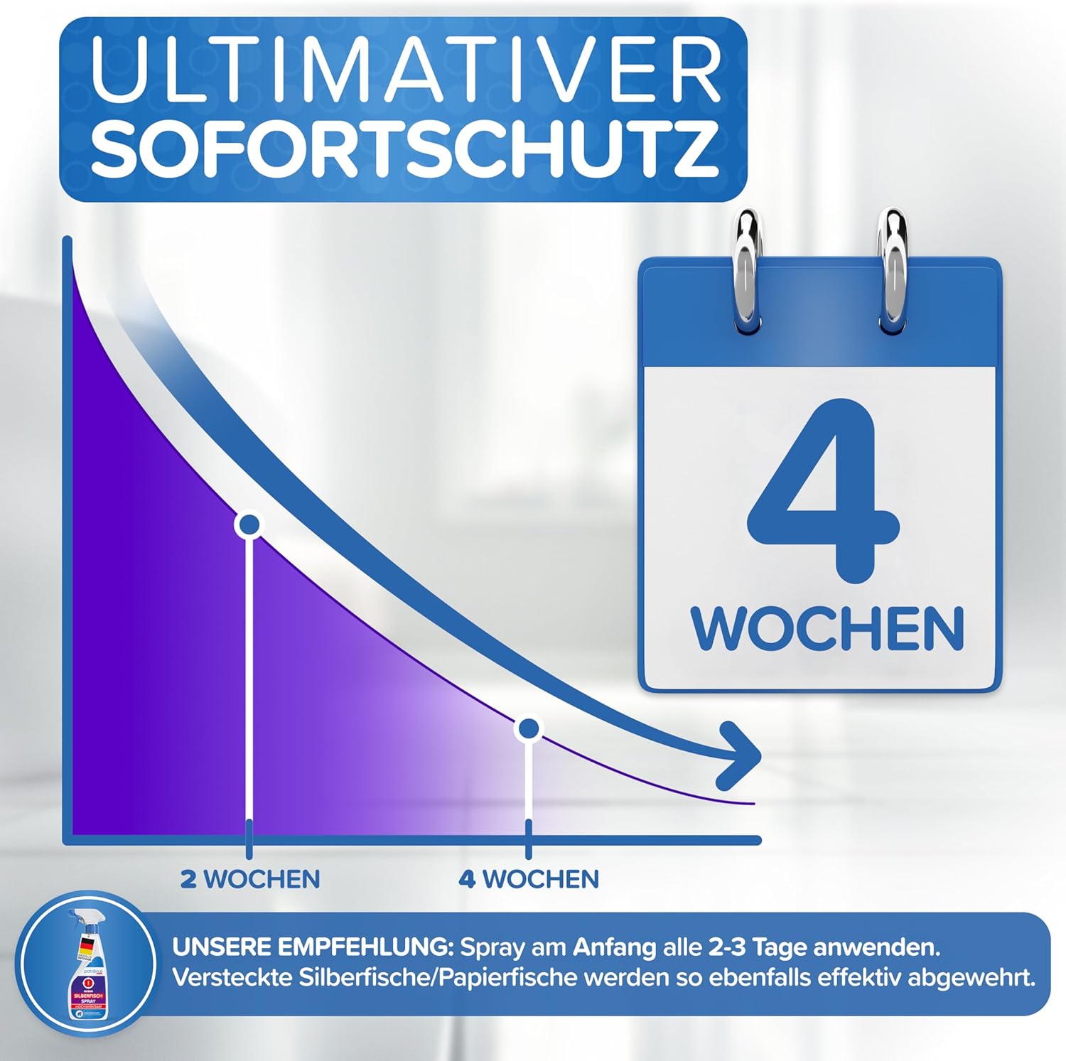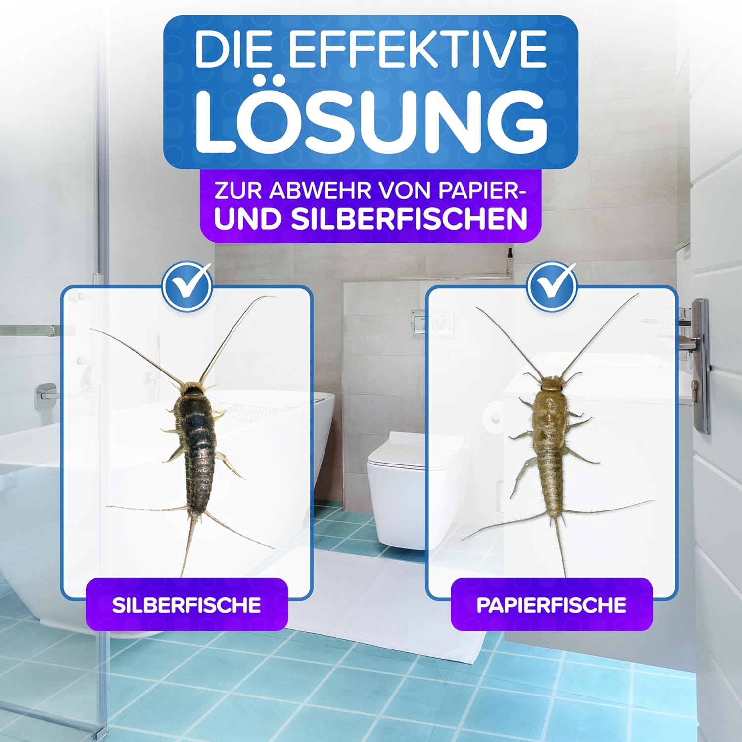Wichtig: Bei hartnäckigen oder bereits länger andauernden Problemen kann die Anwendung mehrmals pro Woche, bis zum Ausbleiben der Silberfische, wiederholt werden.